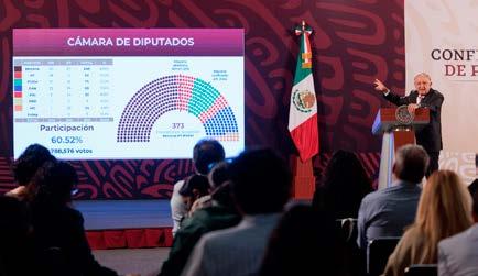 CIUDAD DE MÉXICO.- El presidente Andrés Manuel López Obrador reafirmó que el pueblo decide en una auténtica democracia, tal como lo hizo en las elecciones del domingo 2 de junio cuando votó por las candidatas y candidatos a la Presidencia de la República, jefatura de Gobierno de la Ciudad de México, ocho gubernaturas y la conformación de las cámaras de Diputados y de Senadores.