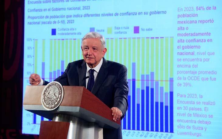 Confianza en AMLO Según un informe de la OCDE, un 53.6% de los mexicanos afirma tener una gran confianza en su Gobierno en la encuesta realizada en octubre y noviembre pasado.