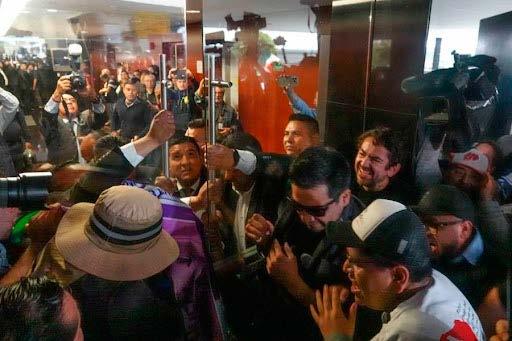 Horas antes de la votación, lo nunca antes visto, manifestantes, en su mayoría empleados del Poder Judicial, que mantenían un plantón frente al Senado de la República, irrumpieron violentamente en el edificio legislativo de la Cámara