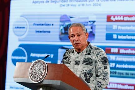 Durante el informe quincenal de seguridad del 28 de mayo al 10 de junio, el comandante de la Guardia Nacional, David Campos Córdova, destacó que México cuenta con un despliegue efectivo de 259 mil 581 integrantes del Ejército y Fuerza Aérea Mexicanos, de la Secretaría de Marina y la Guardia Nacional. Asistieron al reporte de seguridad: los secretarios de la Defensa Nacional, Luis Cresencio Sandoval González y de Marina, José Rafael Ojeda Durán y el subsecretario de Seguridad Pública de la SSPC, Luis Rodríguez Bucio.