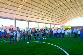 El Mandatario estatal cerró su recorrido con la inauguración de la rehabilitación de la cancha pública de pasto sintético de la colonia “El Campanario”, proyecto en el que se invirtieron 990 mil pesos en beneficio de más de 3 mil jóvenes