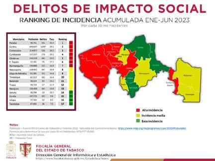 En el documento se detalla el comportamiento mensual del fenómeno delictivo, el cual es analizado diariamente por las autoridades de Tabasco en la Mesa de Coordinación para la Construcción de la Paz, encabezados por el gobernador Carlos Manuel Merino Campos y donde además concurren instituciones federales y estatales.