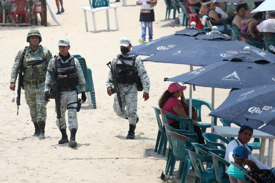 Elementos de la Guardia Nacional y del Ejército resguardan una playa en Aca pulco Ciudad de México, agosto 11 de 2022.La Oficina de la Alta Comisionada de las Na ciones Unidas para los Derechos Humanos (ONU-DH), Michelle Ba chelet, instó a que se mantenga la naturaleza civil de la Guardia Na cional (GN) y de la segu ridad pública en México, “consagrada constitu cionalmente”. Destacó que el uso de las fuerzas armadas en tareas de este tipo debe ser ex cepcional.En el marco del anuncio del presidente Andrés Manuel López Obrador sobre que alista un decreto y una inicia tiva de ley al Congreso para trasladar toda la estructura de la GN a la Secretaría de la Defen sa Nacional (Sedena), la portavoz de la Alta Co misionada de la ONUDH, Ravina Shamdasani, reiteró que ya diferentes mecanismos de dere chos humanos han insis tido en el fortalecimien to de las instituciones civiles en “EnMéxico.asegurar el carácter civil de las cor poraciones de seguri dad y en que el uso de las fuerzas armadas en tareas de seguridad pú blica es excepcional, un último recurso de carác ter temporal y fiscaliza do por órganos civiles independientes”, dijo. A través de redes sociales, la ONU-DH dio a conocer estas decla raciones de la portavoz en Ginebra, Suiza, quien también insistió en que la Alta Comisionada “ha reiterado en relación con varios contextos que la creciente milita rización de funciones civiles básicas supone un debilitamiento de la institucionalidad demo crática”. Esta oficina de la ONU igualmente re iteró su disposición de proporcionar asistencia técnica al Estado mexi cano para fortalecer las instituciones civiles, así como la transparencia y la rendición de cuentas en materia de seguridad de autoridades civiles y militares.