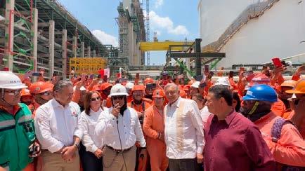 ta y está acompañado de la secretaría de Energía, Rocío Nahle; del titular de Pemex, Octavio Romero; y del gobernador del estado, Julio Menchaca.