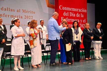 lupe Castro de Merino, también entregó reconocimientos y medallas al Mérito Profesional y Humanístico de Enfermería 2022, con lo que agradeció a todas y todos, quienes diariamente trabajan con dedicación y compromiso, aliviando el sufrimiento de miles de personas.