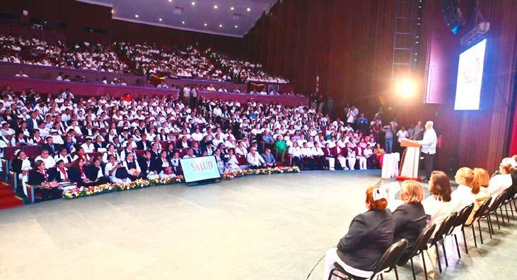 El mandatario destacó que en esta administración transformadora y reconciliadora se ha fortalecido el sistema de salud pública, garantizando el acceso universal y gratuito a los servicios médicos y hospitalarios y, con ello, se impulsan programas de capacitación y actualización para todo el personal de la salud.