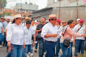 Acompañados de los candidatos a diputados Localos, Jorge Bracamonte Hernández y Abby Tejeda, la abanderada mo-