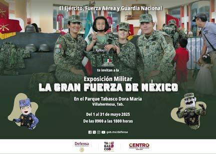 VHSA. TAB., 12 DE MAYO DE 2025.Hasta el 31 de mayo, el Parque Tabasco ‘Dora María’ continuará abierto para que las familias disfruten de la exposición ‘La Gran Fuerza de México” y conozcan el trabajo que realizan las Fuerzas Armadas, donde dejan constancia de la fuerza, valor, desempeño, entrega, disciplina y capacidad de las fuerzas militares.