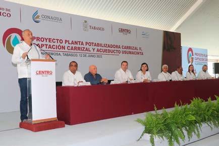 TABASCO; LUNES 12 DE JUNIO DE 2023.- La nueva planta potabilizadora Carrizal II, la plataforma de captación y el acueducto Usumacinta, que comenzarán a construirse a partir del 1 de agosto con una inversión superior a 950 millones de pesos, darán solución integral a los problemas de abasto de agua potable y de turbiedad que viven colonias de Villahermosa, ya sea en temporada de lluvias o en época de seca, subrayó el gobernador Carlos Manuel Merino Campos.