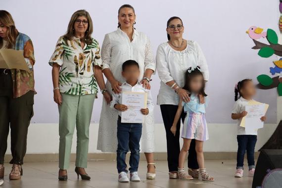 La esposa del gobernador Carlos Manuel Merino Campos dijo que muchas madres y padres de familia sienten nostalgia al pensar lo que han crecido sus pequeños, y que pronto ingresarán a la primaria para adquirir nuevos saberes y continuar su preparación. Después de entregar reconocimientos y diplomas a los pequeños que egresaron del tercer año de preescolar y disfrutar de un bailable que prepararon para sellar