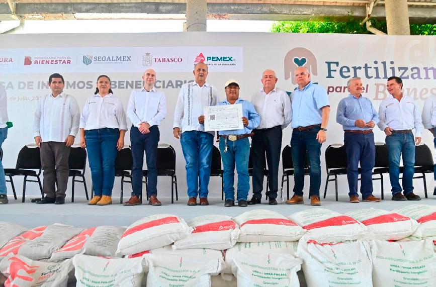 En presencia de productores de Jalapa y Tacotalpa, Cota Montaño dio a conocer que este mismo jueves quedaron debidamente abastecidos de fertilizantes los 11 centros de distribución que atenderán a los hombres del campo de los 17 municipios, por lo que anticipó que por instrucción presidencial, desde noviembre se comenzará la entrega de los insumos del año próximo para alcanzar la meta ordenada por el mandatario de México.