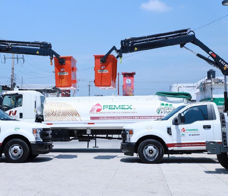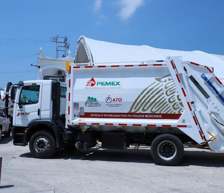 En la ceremonia a la que acudieron los alcaldes de Huimanguillo, Óscar Ferrer Ábalos; de Jalpa de Méndez, Nuris López Sánchez y de Cunduacán, Abraham Cano González; además de representantes de los tres municipios restantes que resultaron favorecidos Octavio Romero destacó que los apoyos consistie- administración municipal de Jonuta recibió un camión recolector de basura; y el Ayuntamiento de Nacajuca fue equipado con una pipa de agua con capacidad de 10 mil litros. Romero Oropeza extendió un reconocimiento al Gobierno del Estado, así como a las autoridades de los municipios petroleros, porque con su ayuda se ha logrado construir a lo largo de cinco años una relación de confianza y de convivencia cordial y respetuosa con las comunidades con presencia de hidrocarburos. ron en la dotación de 13 vehículos y maquinaria por un monto de 27 millones de pesos. Explicó que de ese paquete de beneficios, el Gobierno del Estado recibió un equipo de desazolve para la Comisión Estatal de Agua y Saneamiento (CEAS) y una ambulancia para la Secretaría de Salud, en tanto que el Ayuntamiento de Huimanguillo fue beneficiado con una ambulancia y un tractor con implementos agrícolas.