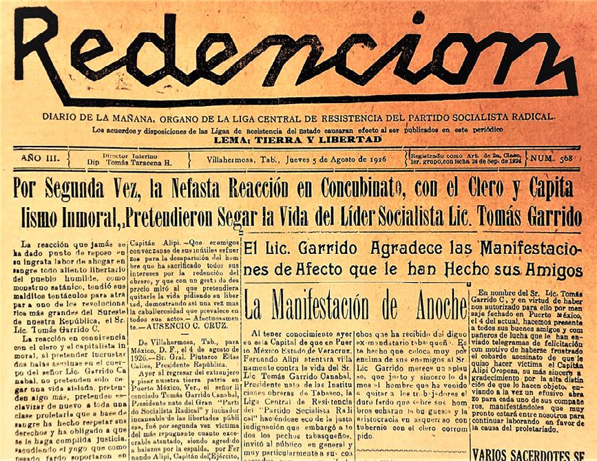 En Tabasco, entre diciembre de 1923 y junio de 1924, garridistas y delahuertistas lucharon por el poder. En esos siete meses se decidió qué proyecto debía administrar el futuro de la sociedad local. Cobijado por el obregonismo y el callismo, el garridismo salió triunfante e inició una hegemonía que transformó a Tabasco, bajo un proyecto social que propició cambios estructurales, que determinan nuestra historia hasta nuestros días. Garrido fue gobernador de Tabasco, ejerciendo plenamente dicho cargo, entre junio de 1924 y febrero de 1926, porque en esta última fecha, renunció a su cargo para ser candidato a senador de la república. Su gobierno consolidó instituciones y organizaciones sociales, que le permitieron iniciar la transformación social de Tabasco; y creó su principal aparato ideológico: el Partido Socialista Radical de Tabasco. En ese proceso, enfrentó a los españoles radicados en nuestro estado, porque operaban a favor de las oligarquías locales y asumían posiciones contrarrevolucionarias.
