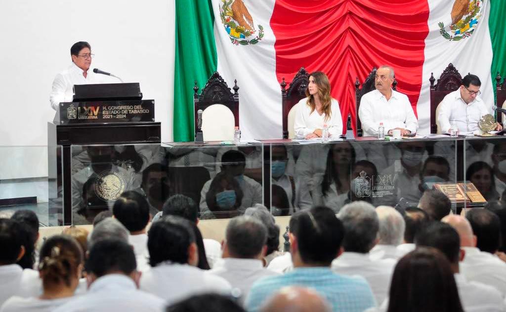 Tab., dic 12 de 2022.- El gobernador Carlos Manuel Merino Campos asistió este día a la presentación del informe de actividades 2022 del titular de la Fiscalía General del Estado (FGE), Nicolás Bautista Ovando, ante el Congreso del Estado, donde destacó el marcado descenso presentado en este año en Tabasco, respecto a los delitos de alto impacto, avalado por el Secretariado Ejecutivo del Sistema Nacional de Seguridad Pública.