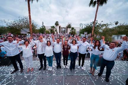 *’’Tenemos que arrasarlos electoralmente, no hay que confiarnos, todas las encuestas dicen lo obvio, que la próxima Presidenta de la República, será Claudia Sheinbaum Pardo, pero yo quiero que le demos un regalo a ese hombre excepcional, a ese gigante, a ese político fuera de serie llamado Andrés Manuel López Obrador, el compañero Presidente, se va sin pensión, se va lleno de amor y reconocimiento y yo quiero que le regalemos tres senadurías de Sonora, los innombrables no tienen lugar en el senado de Sonora’’, comentó. Al respecto, Lorenia Valles Sampedro, candidata de Morena al Senado por el Estado de Sonora enfatizó que con Claudia Sheinbaum se podrá continuar con un modelo que apuesta al desarrollo en todos los sentidos. ’’Sonora ya decidió, porque este es tiempo de mujeres y vamos a ser parte de un momento histórico, estamos felices porque hoy la Cuarta Transformación ha demostrado que teníamos razón, que hoy hay bienestar, hay desarrollo, y vamos por el segundo piso, en este tiempo de mujeres vamos con la Doctora Claudia Sheinbaum Pardo (…) Con Claudia llegamos todas las mujeres’’, celebró.