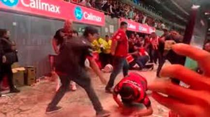 de seguridad y permaneció a cubierto alrededor de un minuto. Mientras era escoltado fuera del escenario, las cámaras le captaron con una oreja ensangrentada.