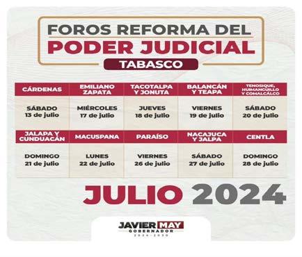 Alejandro Hernández Villahermosa, Tab 13 de julio de 2024.Este sábado en el municipio de Cárdenas se realizó el primero de 10 foros: Reformas del Poder Judicial, donde especialistas, abogados, juzgadores, legisladores, abordarán y discutirán la propuesta de sustituir el actual Consejo de la Judicatura Federal, por órganos administrativos y disciplinarios independientes.