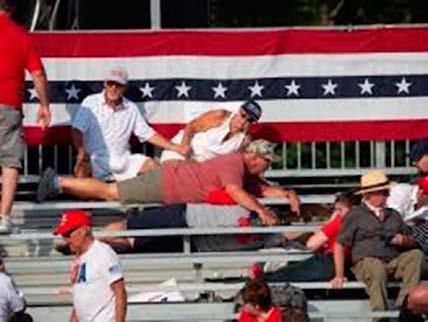 A continuación, el expresidente se puso en pie y levantó el puño afirmando que estaba bien, sin embargo, se alcanzaba a ver sangre saliendo de su oreja. Su comitiva abandonó rápidamente el recinto. La Policía comenzó a desalojar el lugar poco después de que Trump saliera del escenario.