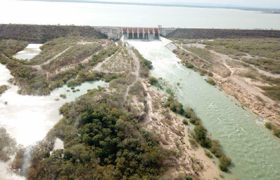Gabinete federal y esta tal en las instalaciones de la Cuarta Región Mi litar. Nuevo León lle va meses sufriendo los impactos económicos por la falta de agua en la entidad; tan sólo la megafuga en acueducto generó una pérdida de 450 millones de pesos. Y de acuerdo con la Comi sión Nacional del Agua (Conagua), la presa “El Cuchillo” está en 53.11 por ciento de su capaci dad.