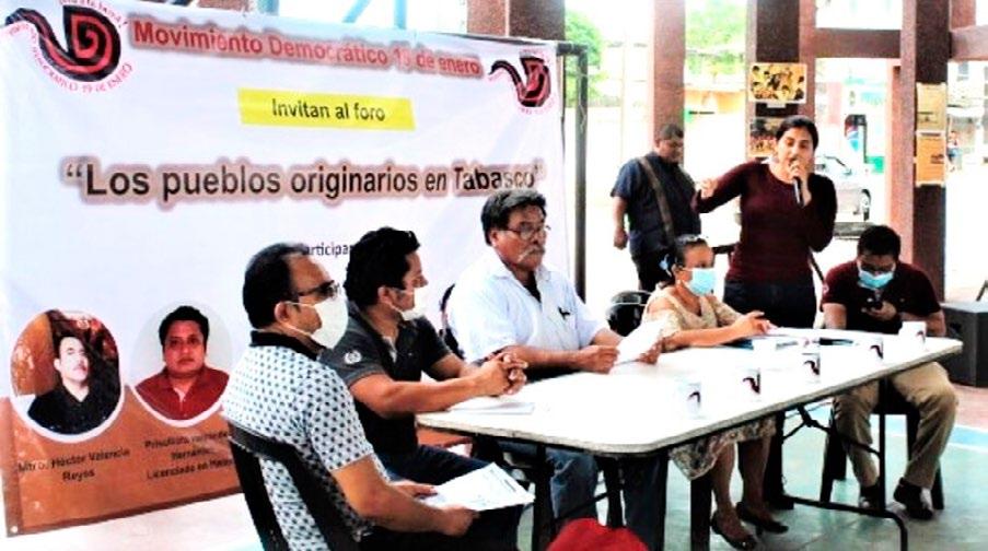 Laura Viridiana Díaz Rodríguez En el marco del Día Internacional de los Pueblos Indígenas, estu diantes y egresados de la Licenciatura en Historia de la UJAT: Rigoberto de Jesús Hernández Con treras, Prisciliano Her nández Hernández, José Luis Hernández Mora les (ambos yokot´anes) y Laura Viridiana Díaz Ro dríguez, organizamos el foro: “Los pueblos origi narios en Tabasco”, con el objetivo de establecer el diálogo entre los asis tentes y los foristas, para que se abordaran aspec tos históricos, culturales y sociales sobre la con dición actual de las co munidades indígenas en Tabasco.El evento cultural que se realizó la tarde del viernes 12 de agosto, en el domo del parque central de Tamulté de la Sabanas, contó con la participación del histo riador Héctor Valencia Reyes, quien habló sobre el devenir histórico de los pueblos originarios en Tabasco, desde el si glo XVI: periodo de inva sión, conquista y coloni zación hasta los albores del siglo XXI, destacan do cómo a lo largo de la historia se han elabo rado discursos históri cos que han ocultado la presencia de los pueblos originarios de la realidad social de Posteriormente,Tabasco.