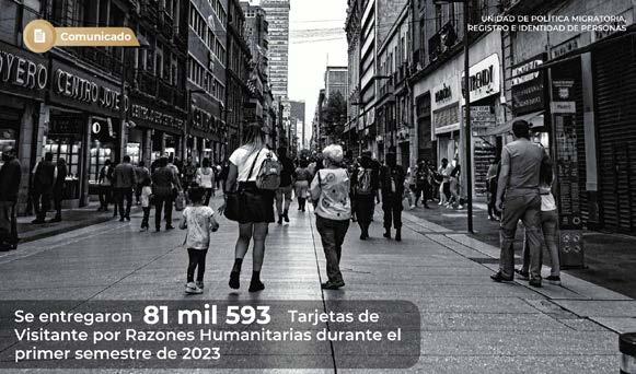 Señala que en los primeros seis meses de este año se entregaron 81 mil 593 Tarjetas de Visitante por Razones Humanitarias (TVRH) a personas provenientes de Haití, 29 mil 253; Honduras, 14 mil 704; Cuba, cinco mil 736; Guatemala, cuatro mil 037; y el resto, 27 mil 863, corresponde a diferentes nacionalida-