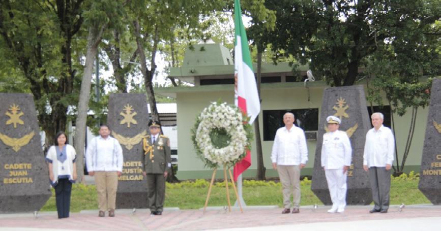 Su sacrificio, puntualizó, es el cimiento con el que se construye la más noble tradición de honor y lealtad que distingue a los egresados del Heroico Colegio Militar y que además, permanece en el ideario colectivo de los mexicanos como una epopeya de lealtad inigualable a la Nación.