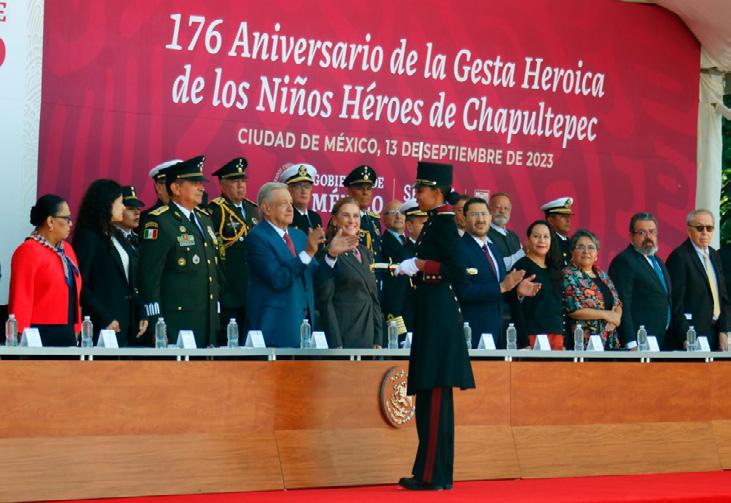 Expuso que en este 2023 el Heroico Colegio Militar cumple 200 años de su creación, y desde entonces se mantiene como un baluarte en la formación de jóvenes mexicanos, futuros oficiales del Ejército y Fuerza Aérea, a quienes se les inculcan valores y virtudes militares, así como el respeto y la observancia de los derechos humanos, y la legalidad.