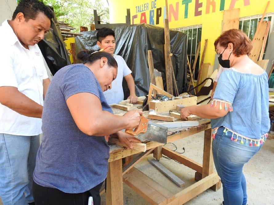 En el Centro Integral de Prevención Social y Mediación Comunitaria, en la colonia Gaviotas, se imparte el taller básico de carpintería al que acuden no solo hombres, sino también, mujeres interesadas en desarrollar nuevos conocimientos para ayudar en el sustento del hogar, acortando los roles de género. Eduma Villegas Pérez, una de las participantes y egresada de la