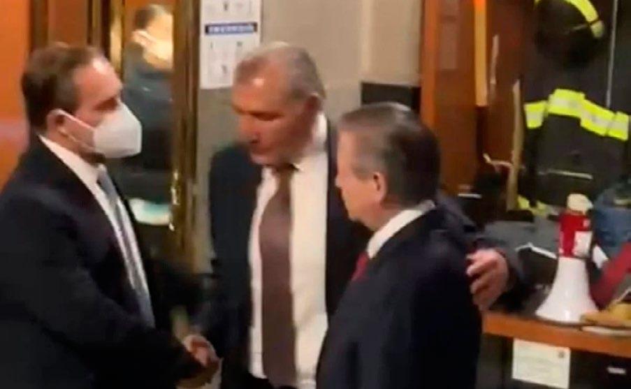 Los ministros Pardo Rebolledo y Zaldívar acompañaron al titular de Gobernación hasta una de las puertas, en donde el equipo de seguridad del funcionario ya lo esperaba para salir del edificio y abordar una camioneta.