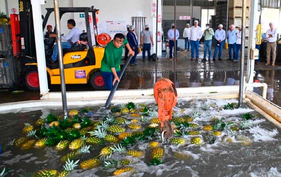 En lo referente a las plantaciones de piña, el representante agrícola reportó alrededor de 3 mil 200 hectáreas de superficie plantada, de las que 1 mil 680 están certificadas en buenas prácticas, con un volumen de producción de más de 95 mil toneladas al año –lo que incluye al mercado de exportación y nacional– y un valor superior a 300 millones.