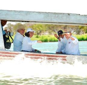 Más tarde, luego de sostener un encuentro con productores de cooperativas ganaderas y pesqueras del municipio, May Rodríguez, puntualizó que se va a reactivar al sector y a la propia economía, porque se va a buscar la autosuficiencia en el consumo de este producto.Por la mañana, el candidato a gobernador realizó una visita casa por casa a las familias del poblado Quintín Arauz y recorrió en lancha el antiguo paso de la panga, para constatar las condiciones en las que actualmente se encuentran los sistemas de producción.
