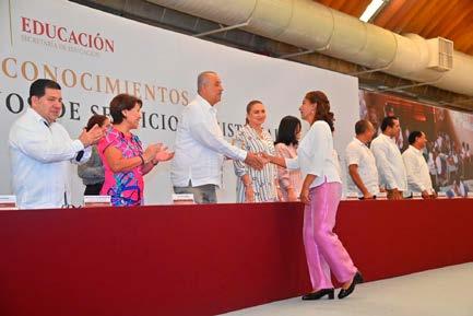 Acompañado de la presidente del Sistema DIF Tabasco, Guadalupe Castro de Merino, y la secretaria de Educación, Egla Cornelio Landero, el mandatario entregó reconocimientos y estímulos por 40 y 30 años de servicio educativo a un total de 699 profesores que también se hicieron acreedores a las medallas “Maestro Altamirano”, “Prof. Luis Gil Pérez”, y “Maestro Rafael Ramírez”.