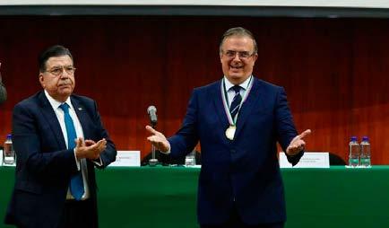 El canciller Marcelo Ebrard recibe el doctorado ‘Honoris Causa’, otorgado por el Instituto Nacional de Administración Pública, A. C., de manos del presidente del Consejo Directivo del INAP, Luis Miguel Martínez Anzures, en instalaciones de la dependencia en la alcaldía Cuajimalpa, Ciudad de México, el 15 de mayo de 2023.
