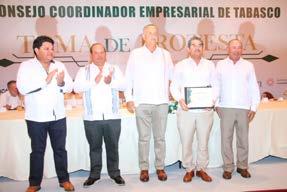 rios de Gobierno, Guillermo del Rivero León; Finanzas, Luis Romeo Gurría Gurría; y Desarrollo Económico y la Competitividad, José Friedrich García Mallitz, aseguró que el Consejo Coordinador Empresarial es hoy por hoy el referente del organismo empresarial en Tabasco.