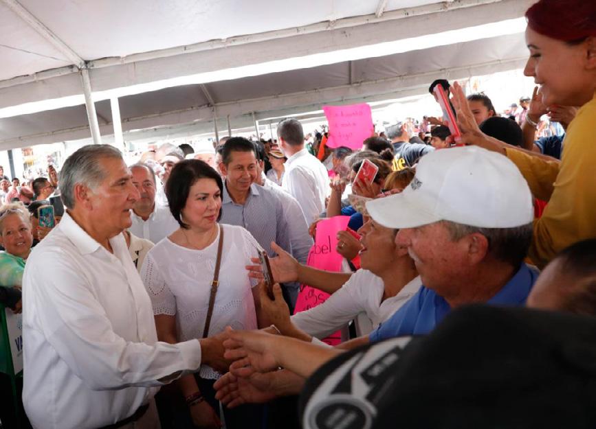 Acompañado por su esposa Dea Isabel Estrada Rodríguez, Adán Augusto López Hernández insistió en que la Cuarta Transformación va a continuar en México y habrá relevo generacional pronto habrá relevo generacio-