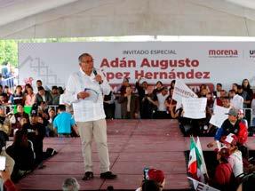 En su octavo recorrido por el Estado de México, en esta etapa interna de trabajo ordenado por su partido, Morena, para difundir por todo el país, en 70 días, qué es y cuáles son los logros de la Cuarta Transformación, el tabasqueño resaltó que únicamente con la continuidad de este movimiento será posible hacer frente, con éxito, a “los embates conservadores y reaccionarios” que buscan descarrilar el proyec-