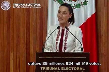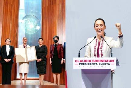Claudia Sheinbaum Pardo fue oficialmente declarada presidenta electa de México por el Tribunal Electoral del Poder Judicial de la Federación. “Nuestro movimiento obtuvo 35 millones de votos, lo que representa el 59-76% del total de la votación, un hecho inédito e histórico”, señala.