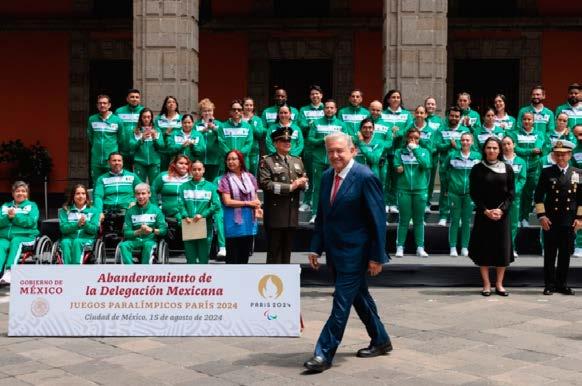 “Pueden estar orgullosos de sus logros y saben que sus capacidades son una fuente de inspiración para los millones de espectadores que estarán siguiendo las competencias”, indicó. Asistieron al evento: el jefe de Gobierno de la Ciudad de México, Martí Batres Guadarrama; la secretaria de Educación Pública, Leticia Ramírez Amaya; los secretarios de la Defensa Nacional, Luis Cresencio Sandoval González y de Marina, José Rafael Ojeda Durán; la presidenta del Comité Paralímpico Mexicano, Liliana Suárez Carreón y la atleta de la disciplina de Para Taekwondo, Claudia Romero Rodríguez, así como deportistas, entrenadores, técnicos y autoridades del deporte.