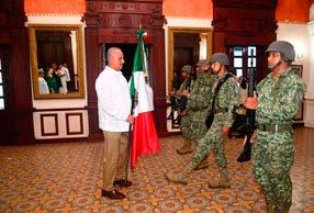 En ese acto simbólico estuvo acompañado de los comandantes de la Trigésima Zona Militar, Héctor Francisco Morán González, y de la Quinta Región Naval, José Barradas Cobos, así como por integrantes del gabinete estatal.