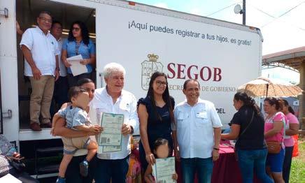El secretario de Gobierno, José Ramiro López Obrador, entrega actas de nacimiento a la población que se acerca al módulo de atención de la Dirección General del Registro Civil