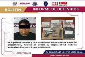Detienen a presunto delincuente con droga y arma en Huimanguillo