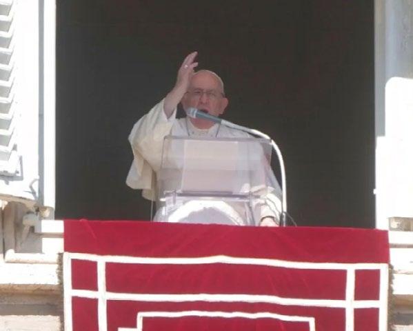 El Papa Francisco bendice a los fieles desde la ven tana de su estudio con vista a la Plaza de San Pedro
