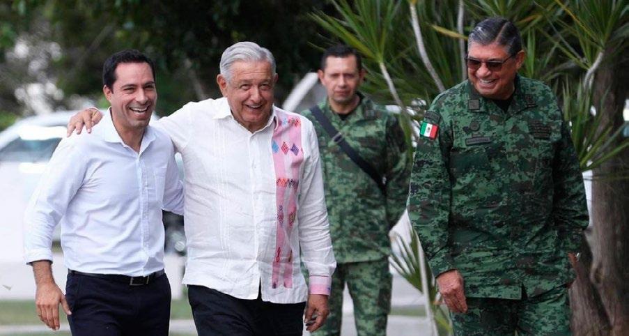 López Obrador estuvo acompañado del general secretario de la Defensa Nacional, Luis Cresensio Sandoval Más tarde, en su cuenta de twitter, el presidente informó que “avanzamos en la cons trucción del Tren Maya, la obra ferroviaria más importante del mundo en la actualidad. Termi naremos los mil 550 ki lómetros en diciembre de 2023. Como diría el ingeniero y general Va llejo, “no hay órdenes en contrario”.