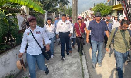 Isidro López Velázquez “Chilo Baila”, y las aspirantes a una diputación local y federal, en una caminata por calles de la cabecera municipal, que concluyó en un mitin en donde, Fócil Pérez expuso que se debe mejorar la seguridad, la salud y promover inversiones para que la gente viva mejor”.