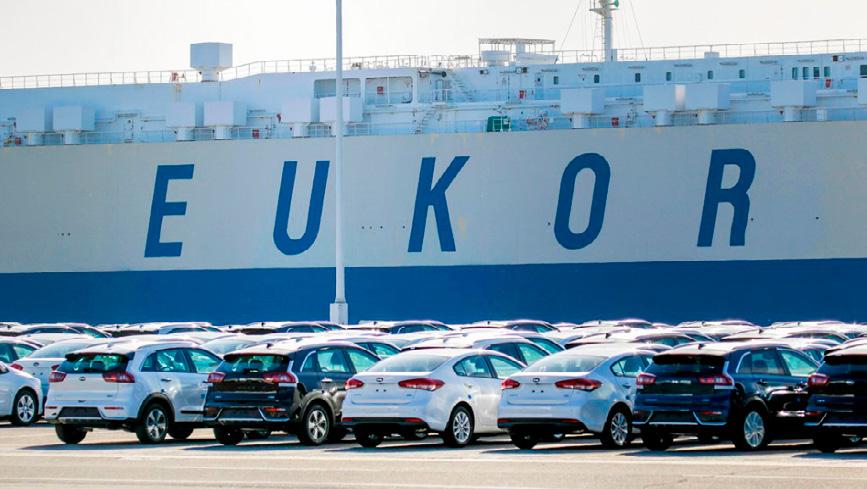 Vehículos de Kia Motors Corp. para exportación esperando su envío. yeongtaek, Corea del Sur, 24 de enero de 2018.