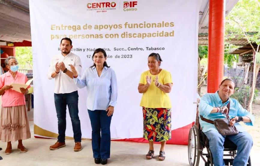 Medellín y Madero 1ª sección, Centro, Tab., 17 de agosto de 2023.- Al considerar que la vulnerabilidad no debe ser una barrera sino una oportunidad para enaltecer valores como la inclusión, la diversidad y, sobre todo, la justicia, la alcaldesa Yolanda Osuna Huerta entregó aquí apoyos funcionales para personas con discapacidad, consistentes en sillas especiales para adultos mayores y menores de edad con parálisis cerebral, bastones, muletas y andaderas.