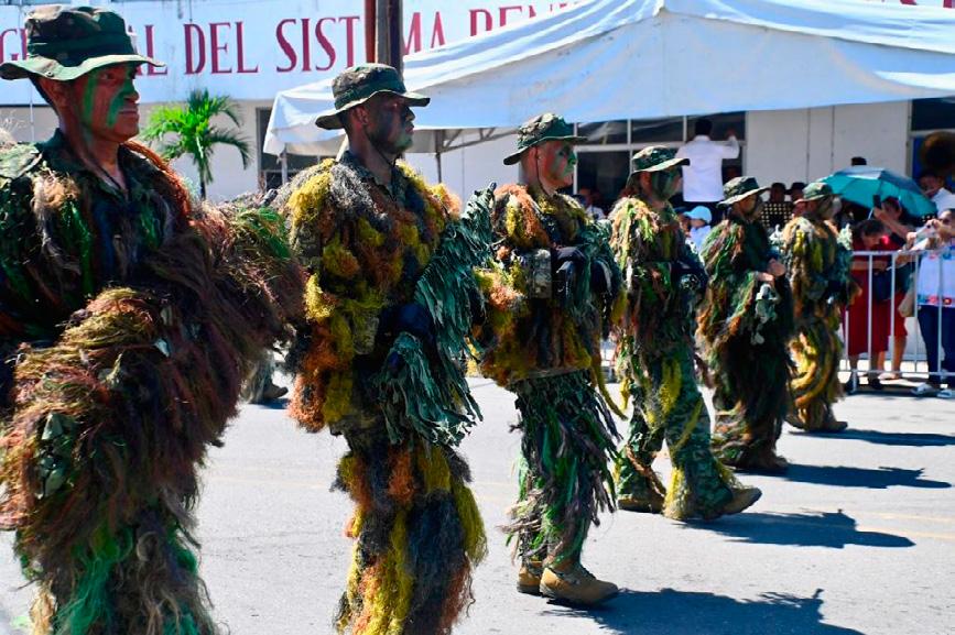 En punto de las 10 de la mañana, la avanzada militar se abrió paso entre el asfalto y marcó el ritmo a los grupos de planteles educativos y organizaciones de la sociedad civil que le siguieron, en un recorrido trazado desde la esquina de “Méndez” con la avenida “Francisco I. Madero”, en pleno corazón de Villahermosa, hasta la intersección con la avenida “José Pa-