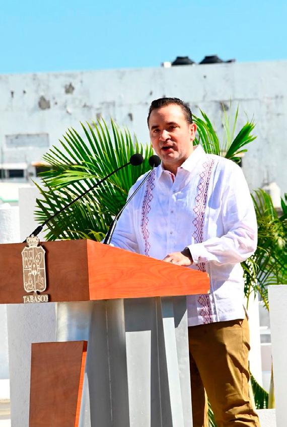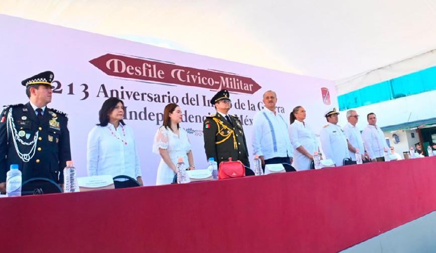 Acompañado de la presidenta del Sistema DIF estatal, Guadalupe Castro de Merino; la alcaldesa de Centro, Yolanda Osuna Huerta; y los comandantes de la Trigésima Zona Militar, Héctor Francisco Morán González, y la Quinta Región Naval, José Barrada Cobos, el jefe del Ejecutivo presenció el despliegue de contingentes que marcharon a lo largo de la avenida “Gregorio Méndez Magaña”.