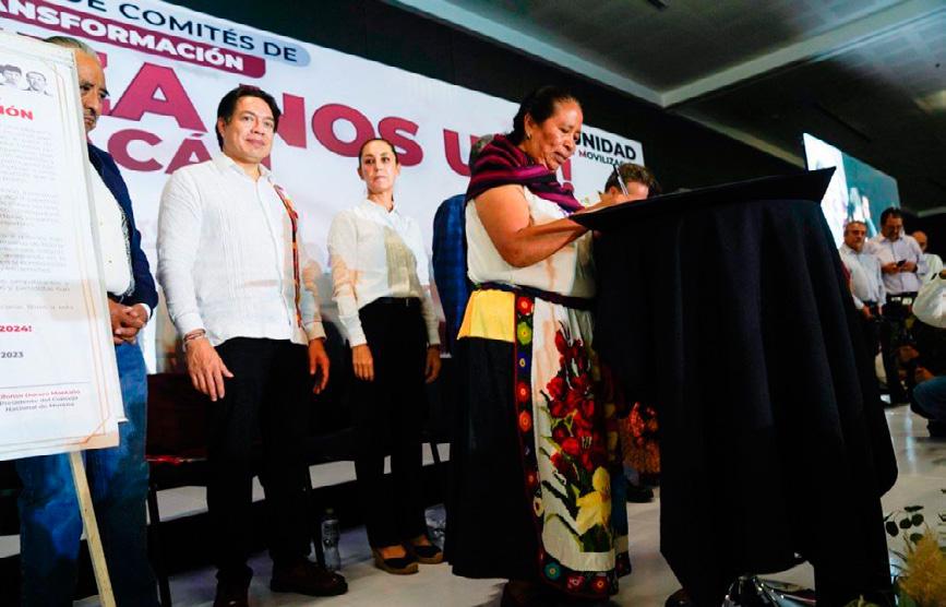 ‘’Arranca hoy la esperanza que va a unir a este gran pueblo para que tengamos por primera vez a una mujer de izquierda para que continúe la Cuarta Transformación, la Dra. Claudia Sheinbaum”, destacó durante la firma del acuerdo.