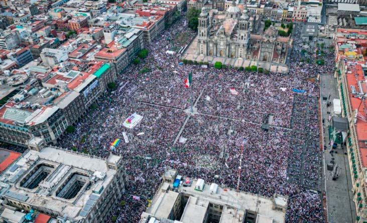 el llamado del mandatario federal, lloviera, tronara o relampagueara. Cabe mencionar que desde el Zócalo capitalino, el mandatario
